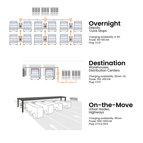 Ticari araçlar için kamyon şarj altyapısı sağlama zorluğuyla karşı karşıya kalan lojistik merkezleri, depo operatörleri ve sahipleri